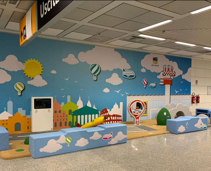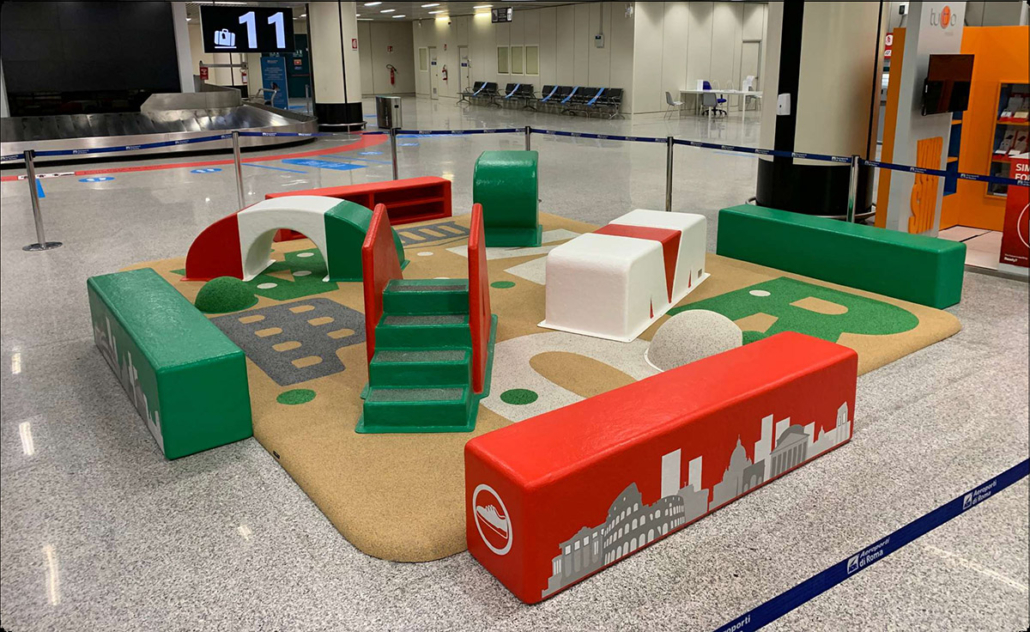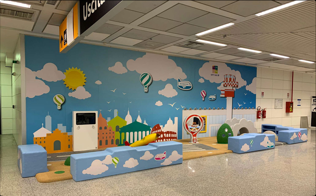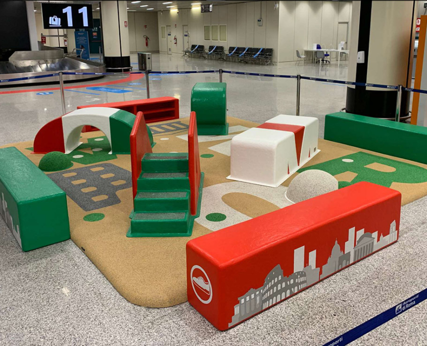 θα έχετε την ευκαιρία να δείτε τους παιχνιδότοπους εσωτερικού χώρου που χρησιμοποιούνται ευρέως στην Ευρώπη σε χώρους αναμονής, μεγάλα supermarket, εμπορικά κέντρα αλλά και Αεροδρόμια στην περιοχή αφίξεων, αναχωρήσεων η παραλαβής αποσκευών όπως πρόσφατα επέλεξε να τοποθετήσει στους χώρους αναμονής το Διεθνές Αεροδρόμιο της Ρώμης Fiumicino Leonardo DaVinci όπως φαίνεται στις σχετικές φωτογραφίες.